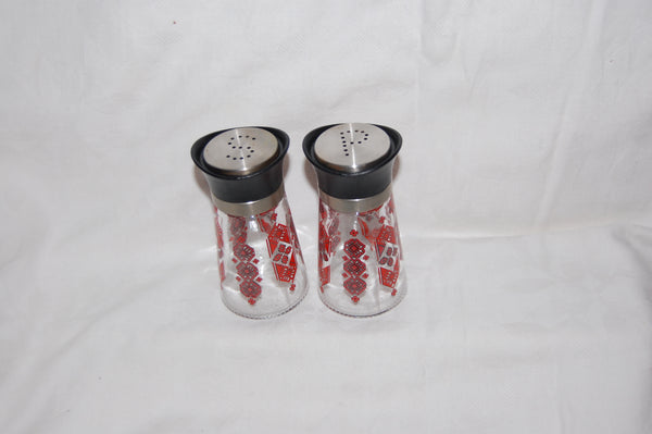 K - 1580 - Set of Glass Ukrainian Oil and Vinegar Bottles