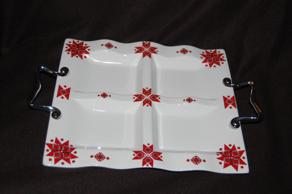 T - 1677 - Four Section Porcelain Server with Chrome Handles